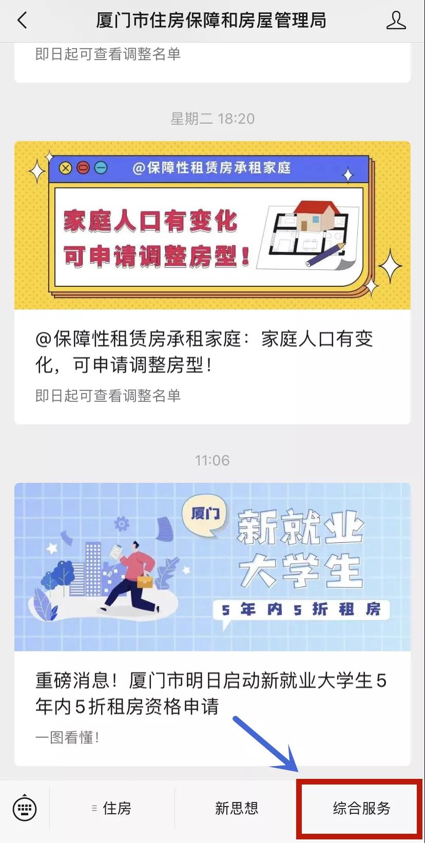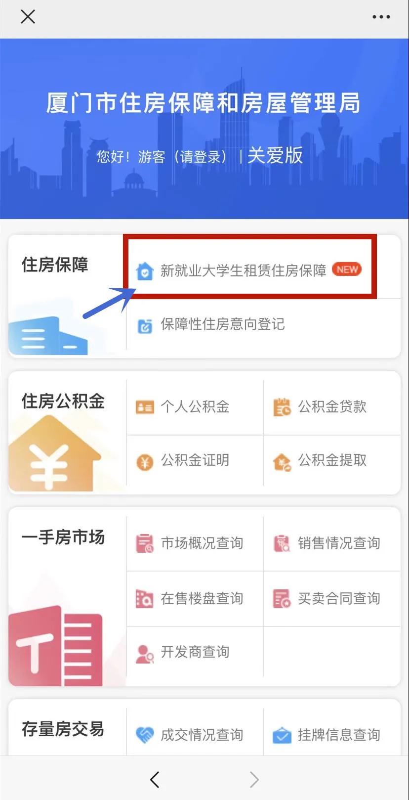 一是“廈門市住房保障和房屋管理局”微信公眾號-“綜合服務(wù)”-“新就業(yè)大學(xué)生租賃住房保障專欄”;