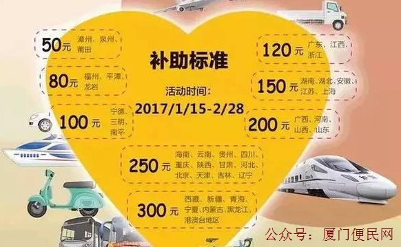 • 廈門(mén)工會(huì)“平安返廈”交通補(bǔ)助最高300元