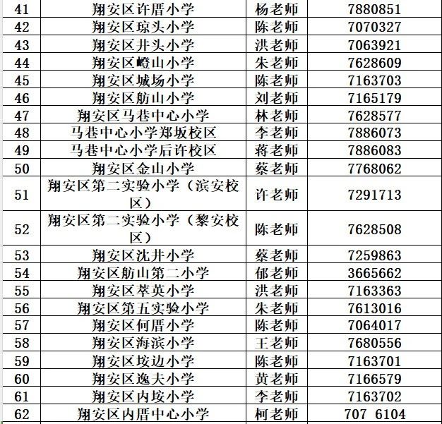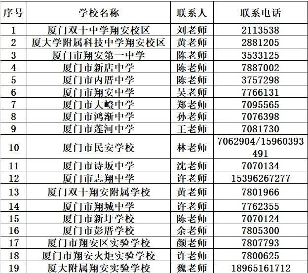 3.翔安區(qū)集體戶初中招生學校一覽表
