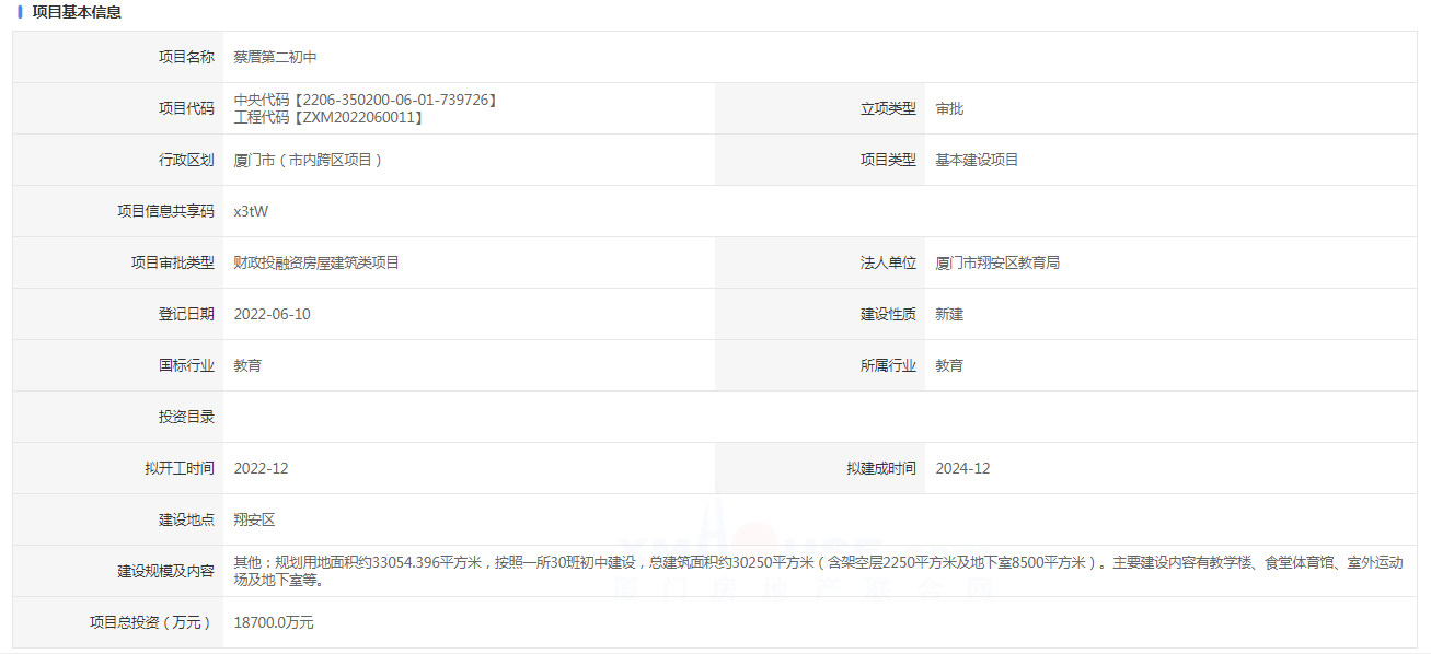 近日,蔡厝第二初中報(bào)建信息公布。