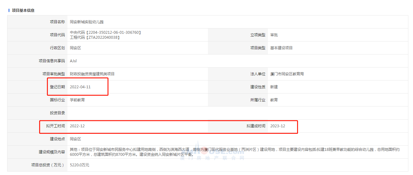 據(jù)4月份的報(bào)建表顯示,項(xiàng)目計(jì)劃今年12月開(kāi)工,預(yù)計(jì)2023年12月建成。