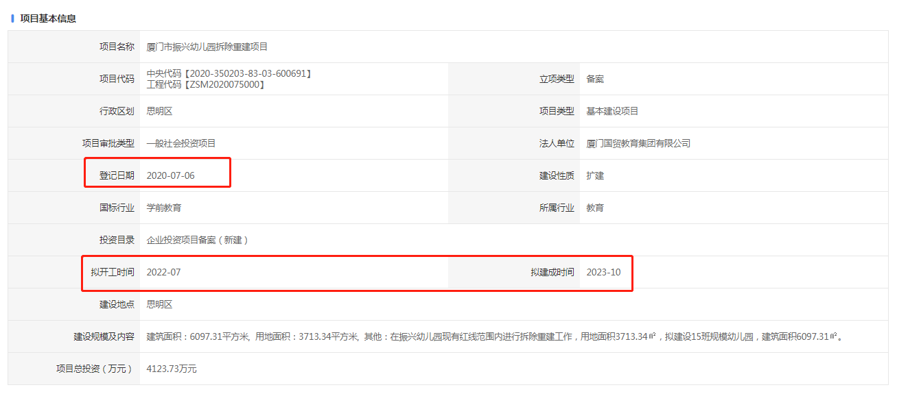 本月初,廈門市振興幼兒園拆除重建項目最新報建信息公布。