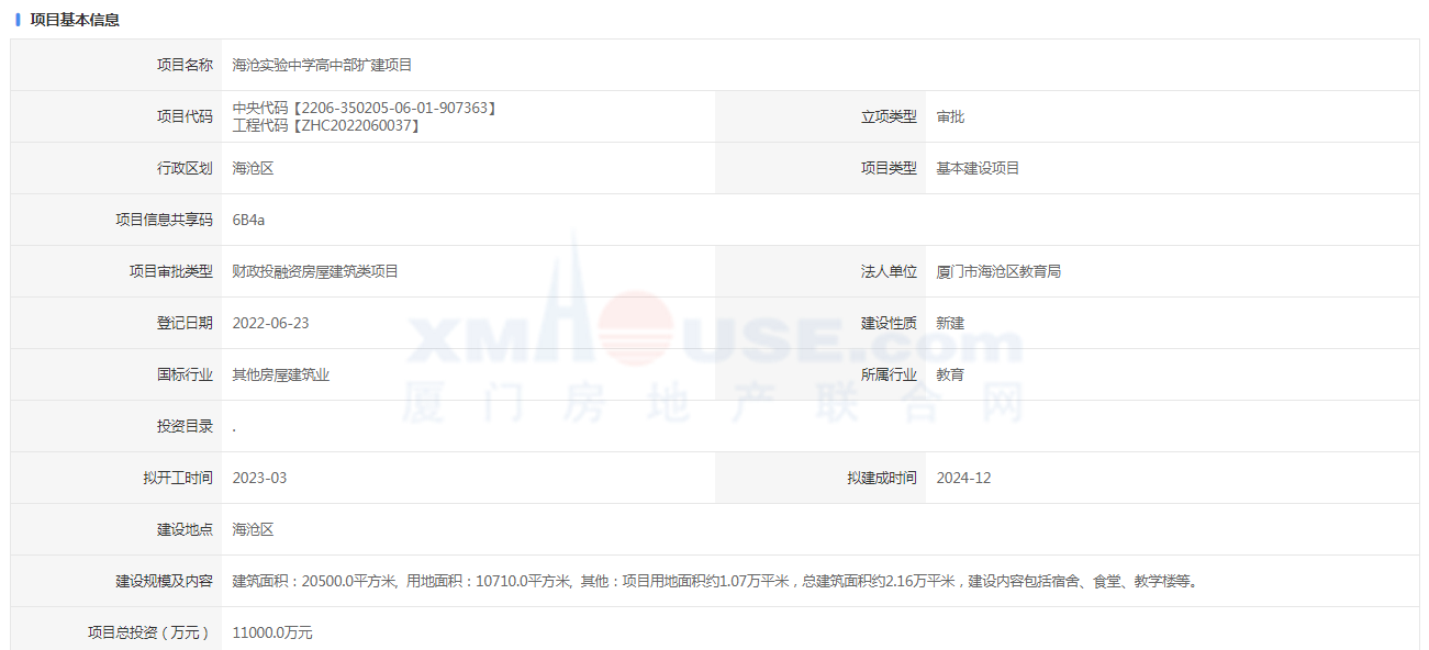 近日,海滄實(shí)驗(yàn)中學(xué)高中部擴(kuò)建項(xiàng)目報(bào)建信息公布。