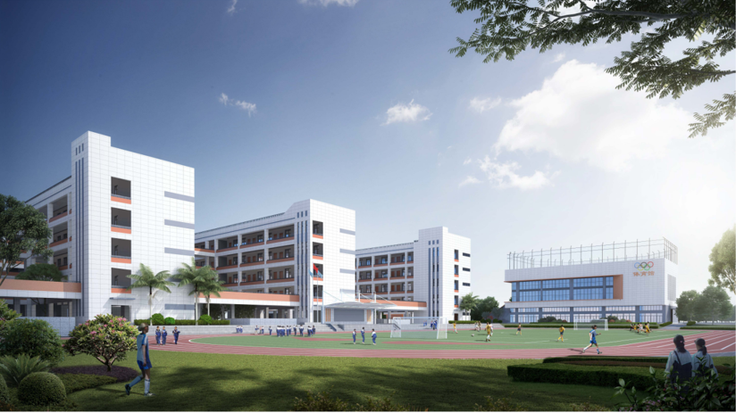 造型設(shè)計簡潔大方,強調(diào)中軸線設(shè)計,融合當(dāng)?shù)氐某鞘酗L(fēng)貌,創(chuàng)造良好的校園形象,凸顯教育文化特征和時代感;充分考慮學(xué)生與教師的心理感受,提供以人為本、舒適明亮的教學(xué)生活空間。