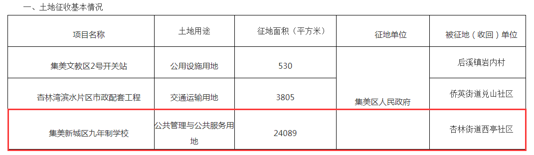 其中最引人關(guān)注的,莫過(guò)于集美新城區(qū)九年制學(xué)校,該項(xiàng)目擬征收西亭社區(qū)集體土地24089平方米。