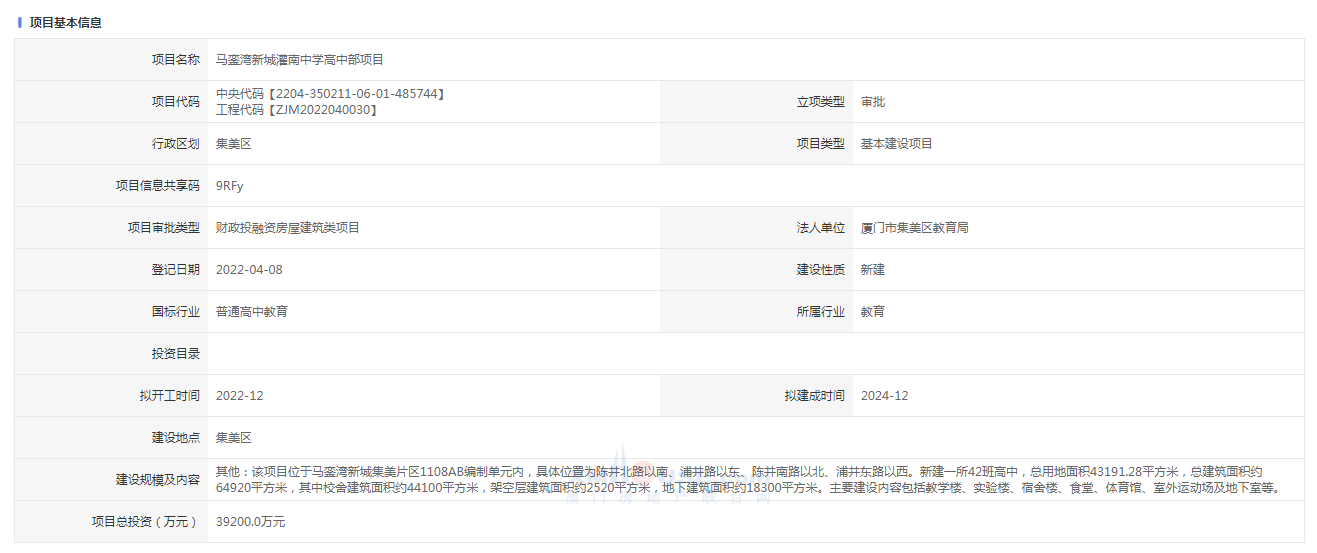 今年4月,該項(xiàng)目報(bào)建信息公布,報(bào)建表顯示,項(xiàng)目計(jì)劃今年12月開(kāi)工,預(yù)計(jì)2024年12月建成。