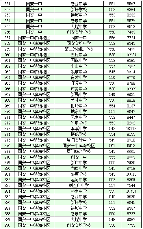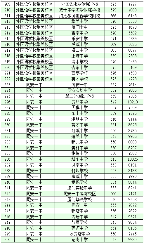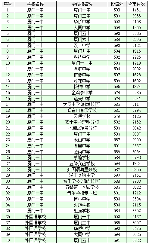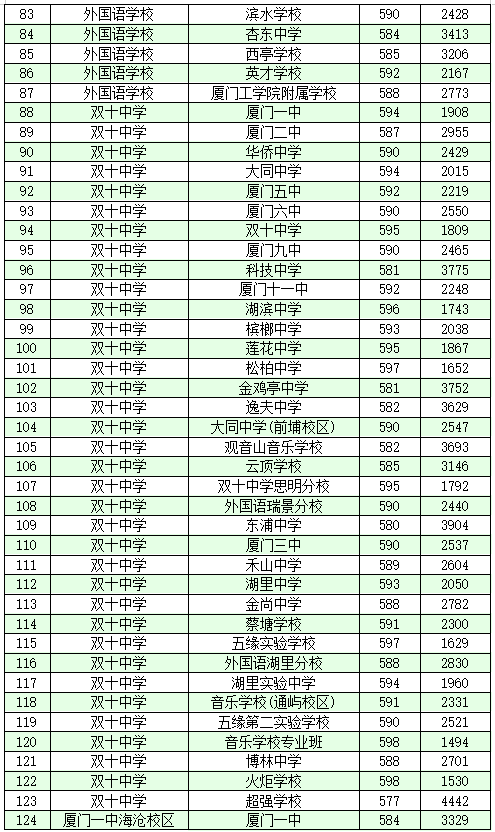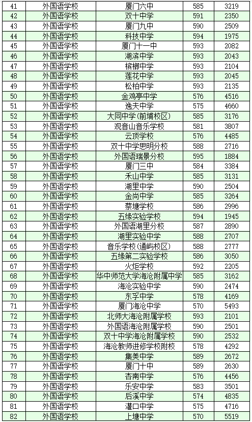 2020年中考廈門外國語學(xué)校最低投檔線和最低位次: