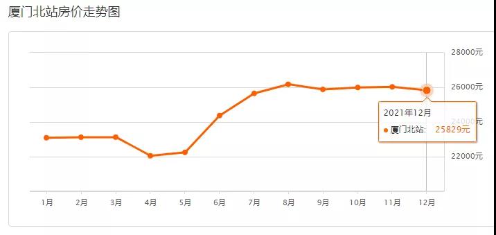 今年以來,廈門北站的房價從5月份開始呈現(xiàn)較大的漲幅。12月二手房均價 25829 元/m?,相比1月份的23091元/㎡,漲了11.8%。