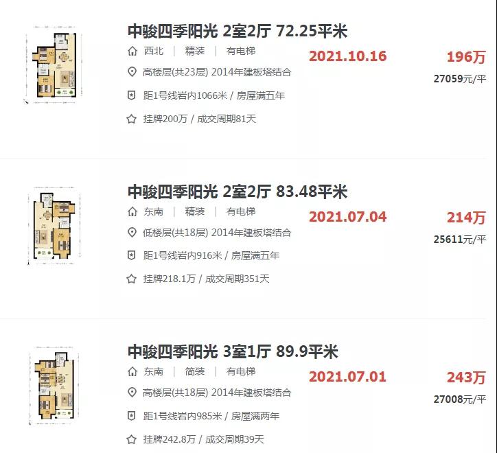 當前片區(qū)主要在售的二手房小區(qū)有后溪花園、中駿四季陽光、新城際廣場、高鐵陽光花園、萬科廣場等,掛牌均價在2.4-2.7萬/㎡。成交價普遍都在2.2-2.5萬/㎡之間。