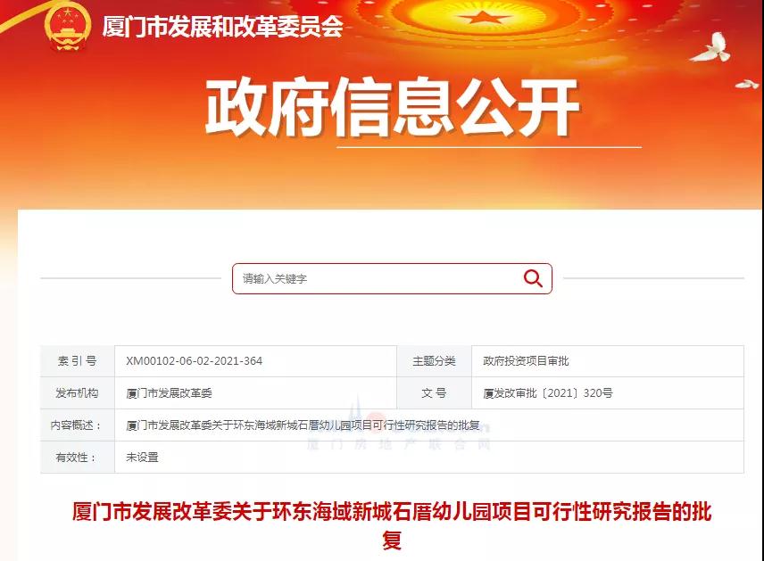 近日,廈門市發(fā)展改革委發(fā)布關(guān)于環(huán)東海域新城石厝幼兒園項(xiàng)目可行性研究報(bào)告的批復(fù),同意建設(shè)環(huán)東海域新城石厝幼兒園項(xiàng)目。