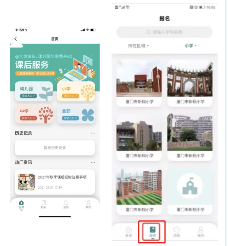 廈門市民卡APP:通過“廈門市民卡”APP的【首頁】-【上學服務】進入【課后服務】服務系統(tǒng)。