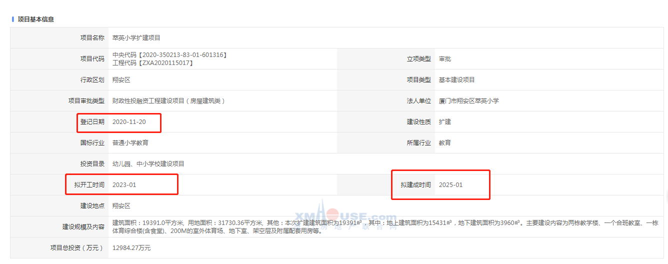 近日,翔安區(qū)萃英小學(xué)擴(kuò)建項目最新報建信息公布。