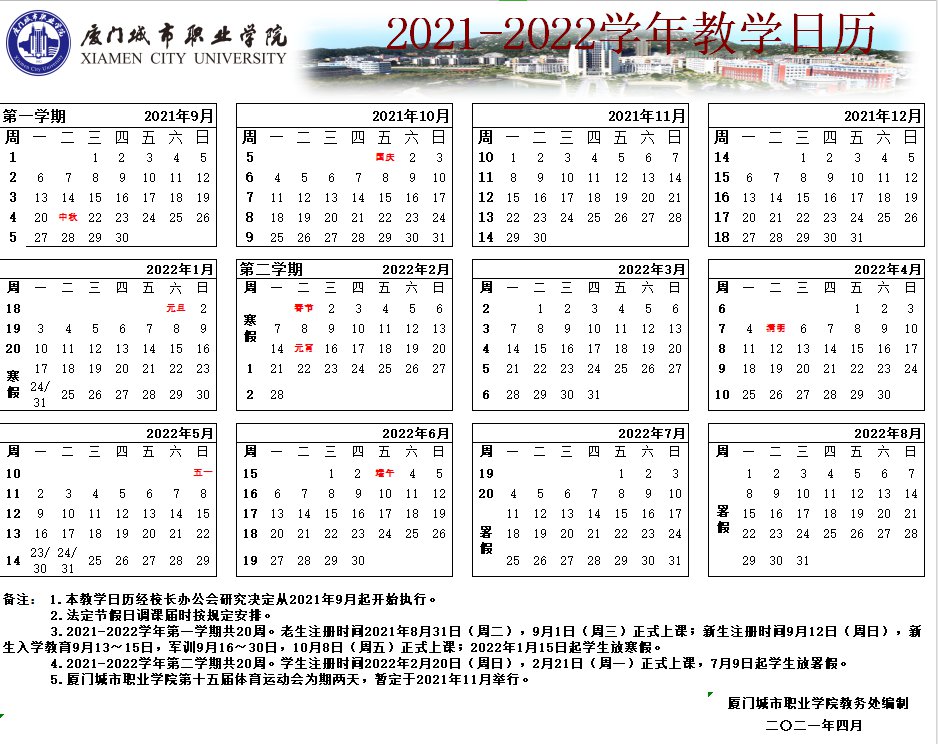 第一學期(共20周):2021年8月31日—2022年1月14日