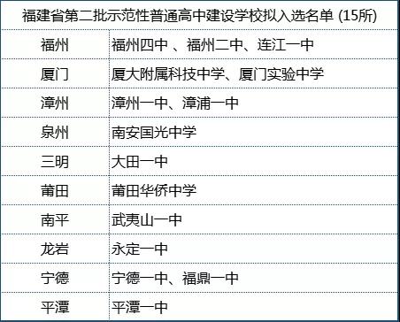 福建省第二批示范性普通高中建設(shè)學(xué)校擬入選名單