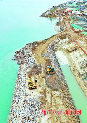 項(xiàng)目全長7668.1m,南起雙滬碼頭,沿大嶝島西側(cè)延伸,直至南港大橋。工程正加速推進(jìn)中。