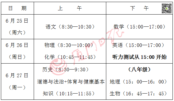 6月27日下午為小中考時(shí)間
