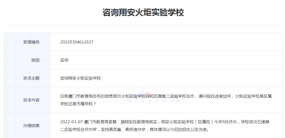 網(wǎng)友:日前廈門市教育局發(fā)布的信息顯示火炬實(shí)驗(yàn)學(xué)校將和五緣第二實(shí)驗(yàn)學(xué)校合作,請(qǐng)問(wèn)現(xiàn)在進(jìn)度如何,火炬實(shí)驗(yàn)學(xué)校是區(qū)屬學(xué)校還是市屬學(xué)校?