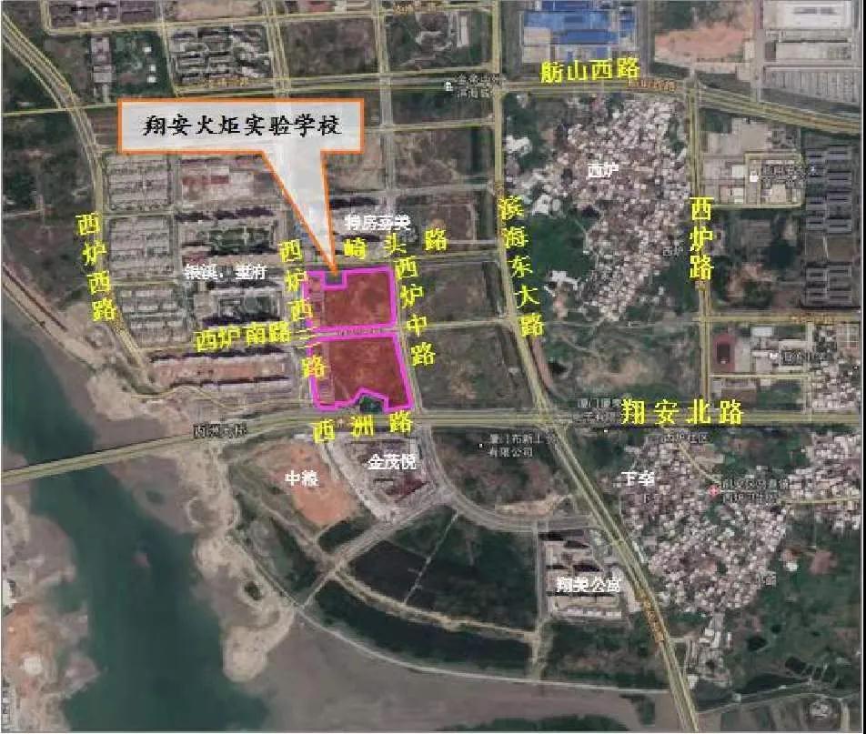 翔安火炬實(shí)驗(yàn)學(xué)校位于廈門市環(huán)東海域新城下潭尾北片區(qū),西洲路北側(cè),銀溪墅府東側(cè),擬建設(shè)一所102班規(guī)模中小學(xué)校,其中北區(qū)為54班小學(xué)、南區(qū)為48班初中。南北兩區(qū)總用地面積為47048平方米。