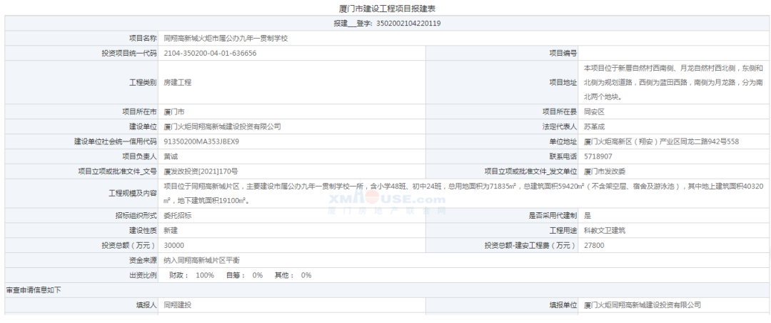 與此同時,廈門市發(fā)展改革委也發(fā)布了關(guān)于廈門市屬火炬高新實驗學(xué)校項目可行性研究報告的批復(fù)公告。