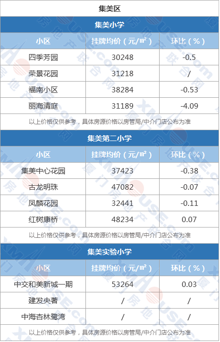 今天,我把廈門各區(qū)熱門小學周邊二手小區(qū)的房價漲跌情況,供家長們參考。