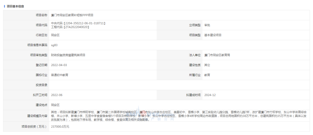 與此同時,廈門市同安區(qū)教育補短板PPP項目報建信息公布!