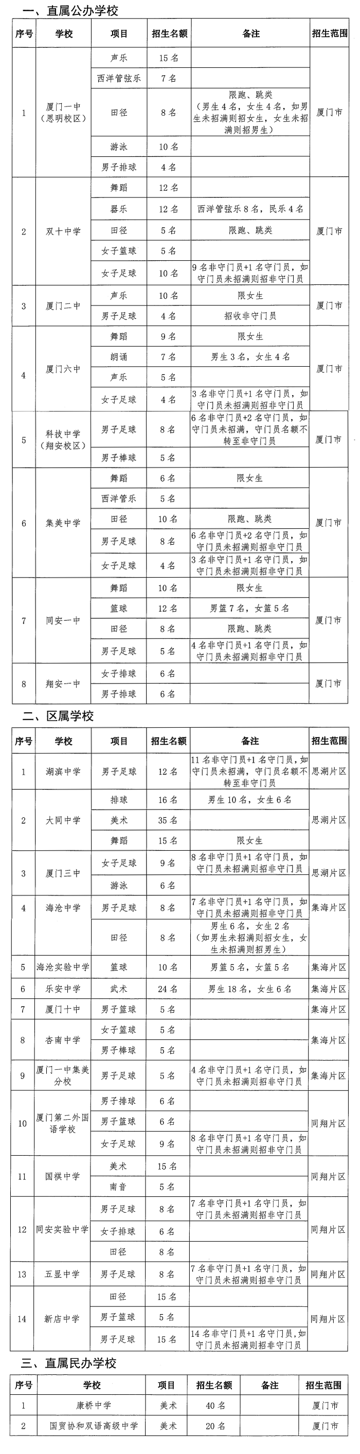 附件:2022年廈門(mén)市高中階段體育藝術(shù)類自主招生學(xué)校名單
