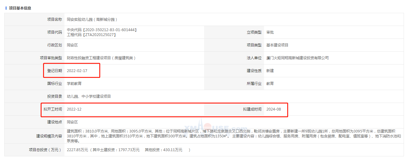 剛剛,同安實(shí)驗(yàn)幼兒園(高新城分園)項(xiàng)目最新報(bào)建信息公布。