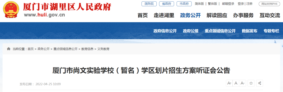湖里教育局發(fā)布公告指出,劃片招生方案的聽證會將于5月12日舉行。