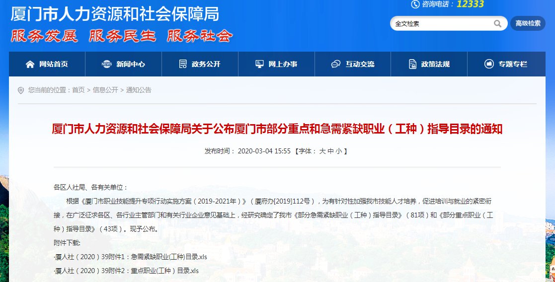 廈門市部分急需緊缺職業(yè)(工種)指導(dǎo)目錄