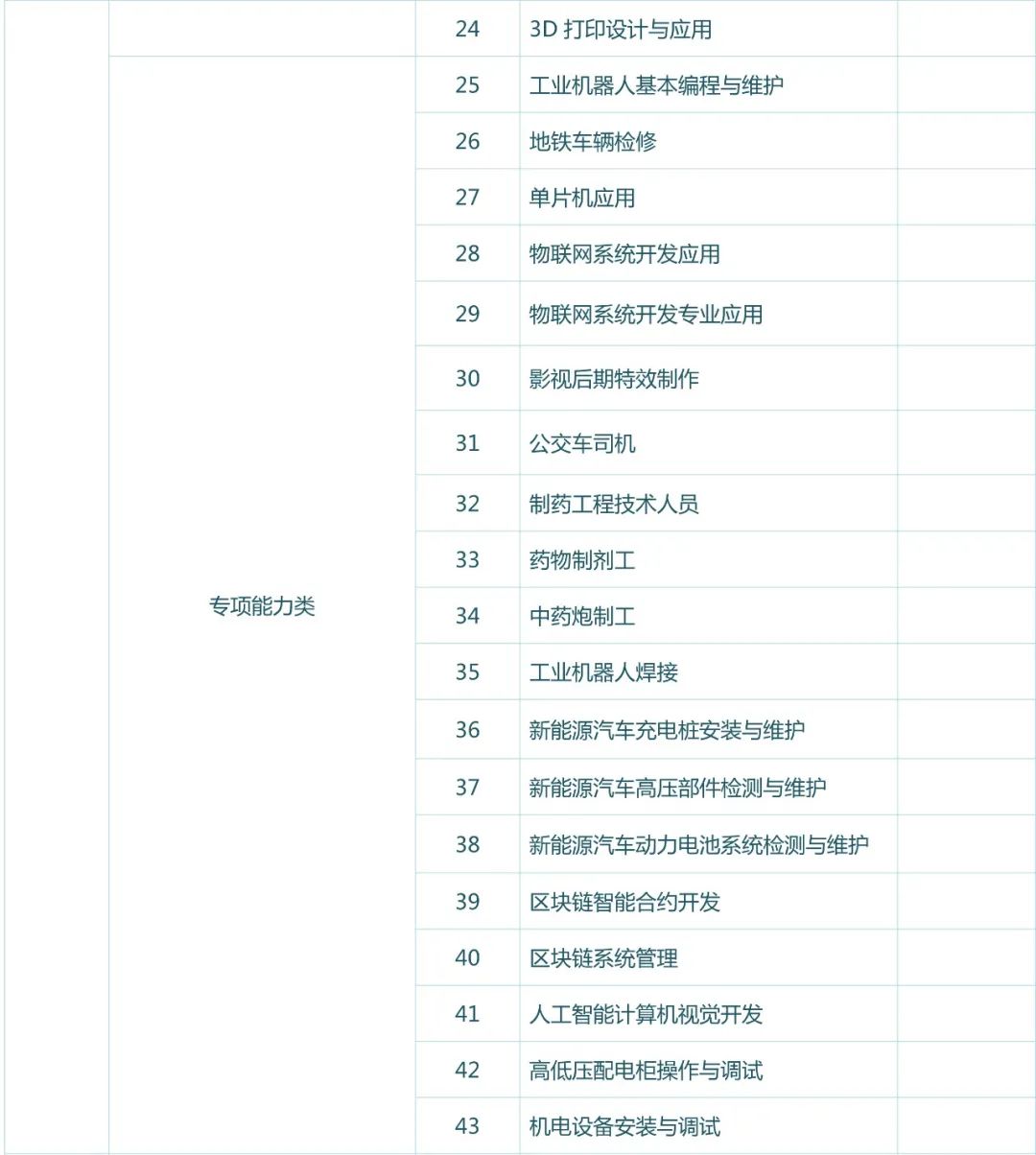 | 專項(xiàng)能力類 | 25 | 工業(yè)機(jī)器人基本編程與維護(hù) | ||