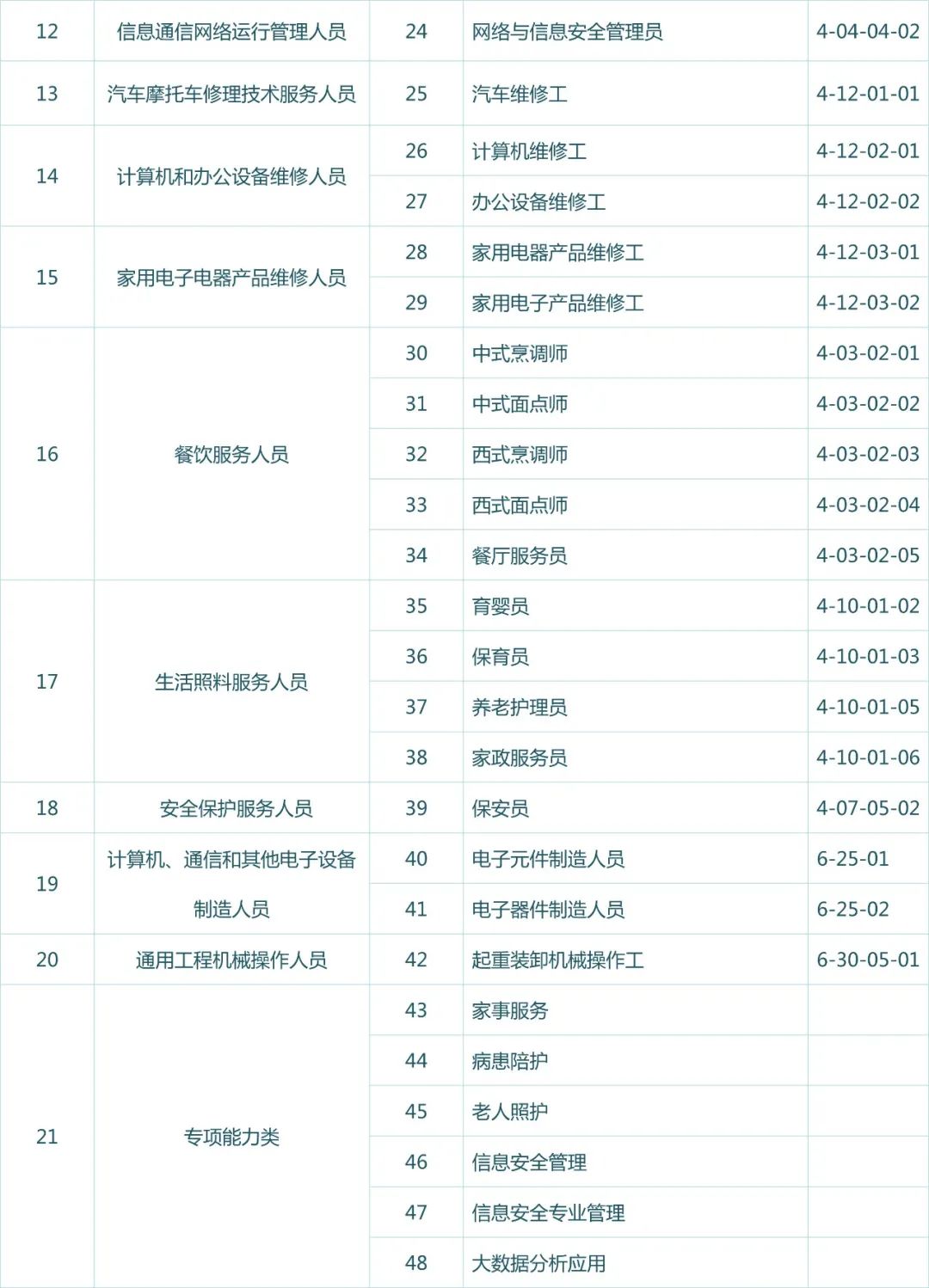| 12 | 生活照料服務(wù)人員 | 17 | 養(yǎng)老護(hù)理員 | 4-10-01-05 |