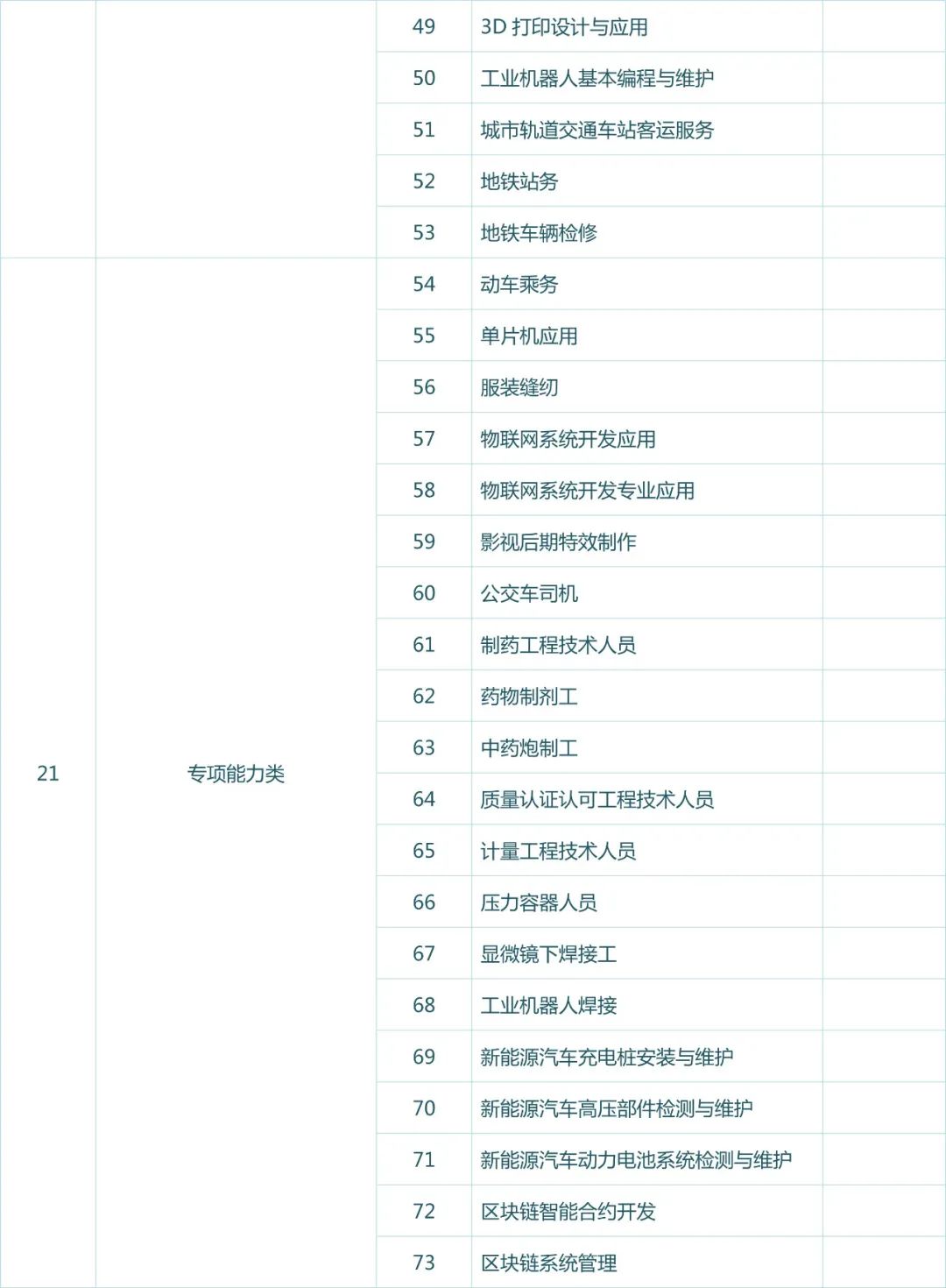 | 21 | 專項(xiàng)能力類 | 54 | 動(dòng)車乘務(wù) | |