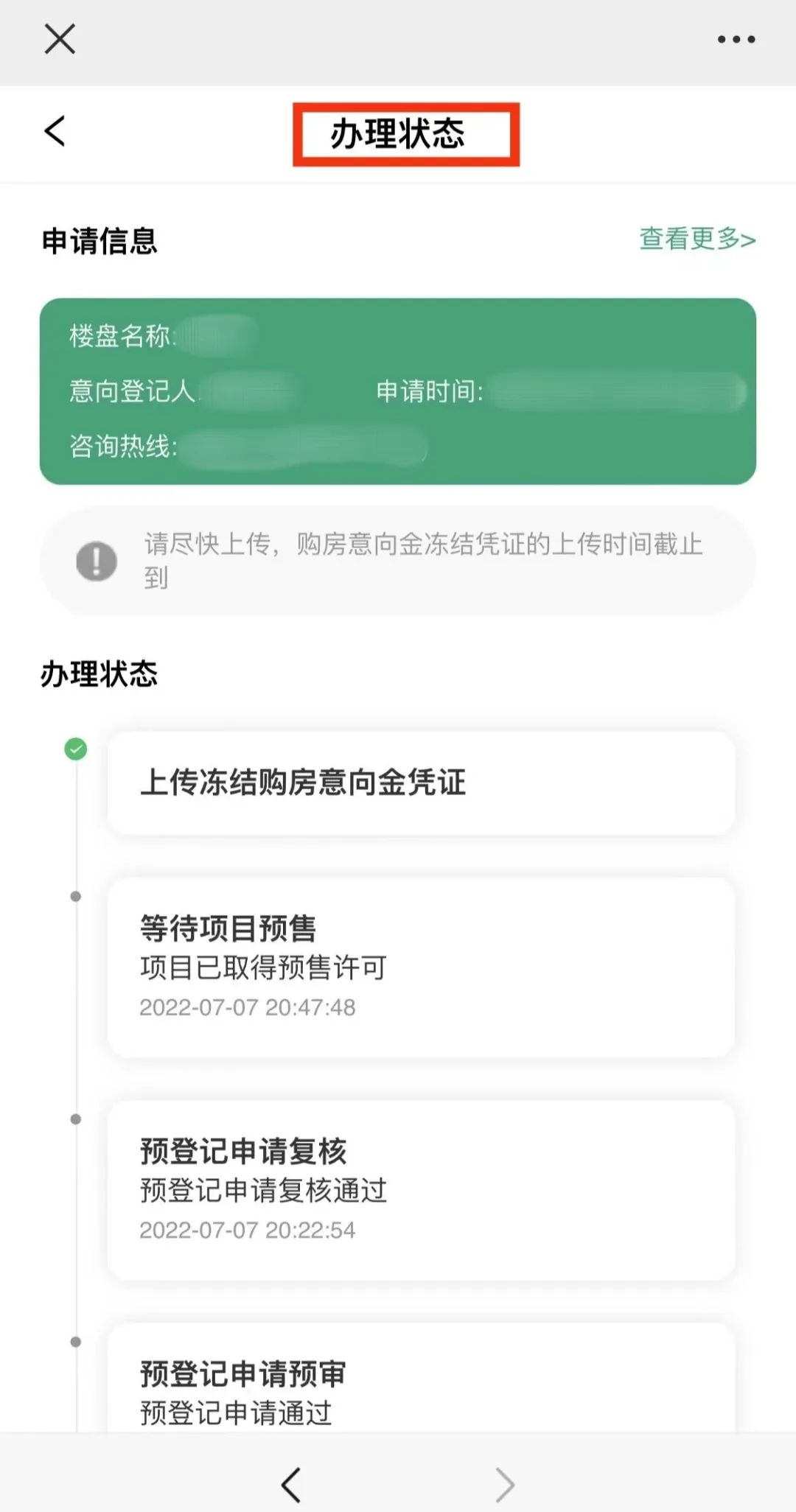 意向登記購房人辦理購房意向金凍結(jié)手續(xù)后,在系統(tǒng)上傳購房意向金凍結(jié)憑證。