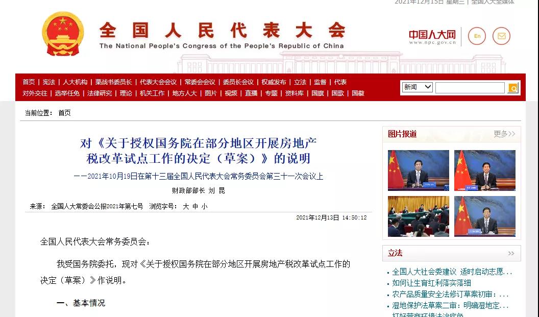 與此同時(shí),從同一天發(fā)布的《全國(guó)人民代表大會(huì)憲法和法律委員會(huì)對(duì)《關(guān)于授權(quán)國(guó)務(wù)院在部分地區(qū)開(kāi)展房地產(chǎn)稅改革試點(diǎn)工作的決定(草案)》審議結(jié)果的報(bào)告》中,我們也可以得出一些信息。
