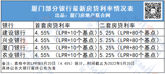 目前廈門(mén)首套房貸利率為4.55%(LPR+10bp),二套房貸利率為5.25%(LPR+80bp)。