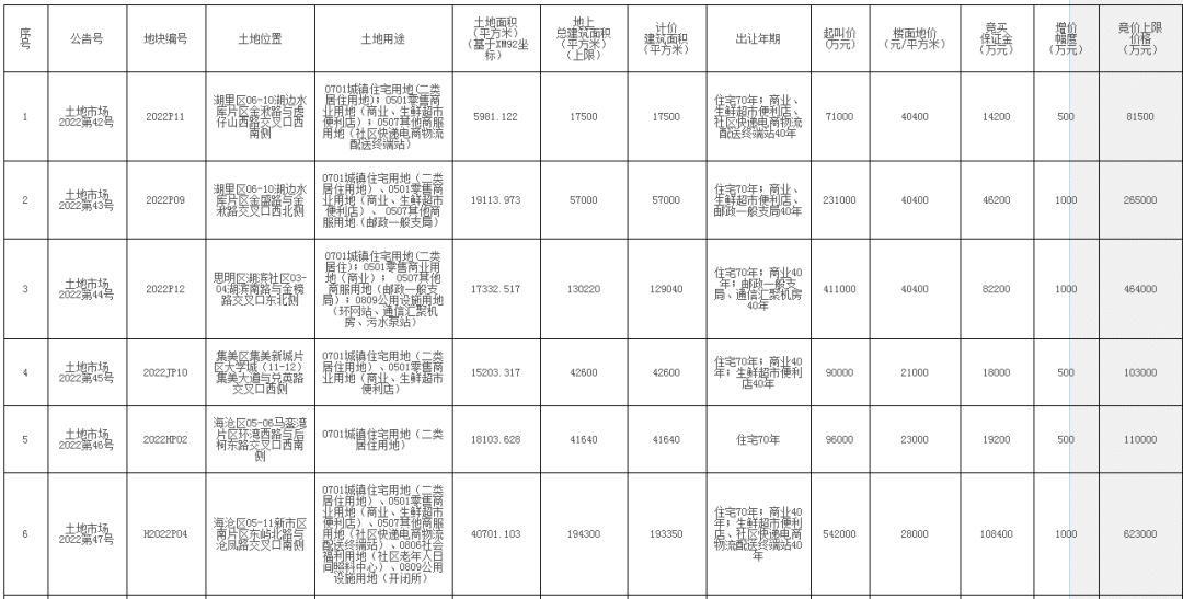 湖里區(qū)將出讓2022P09、2022P11共2宗商住用地,總用地面積約2.51公頃,總計價建筑面積7.45萬平方米,起拍總價30.2億元,采用“限房價、限地價、定配建、定品質(zhì)+搖號”方式拍賣出讓。