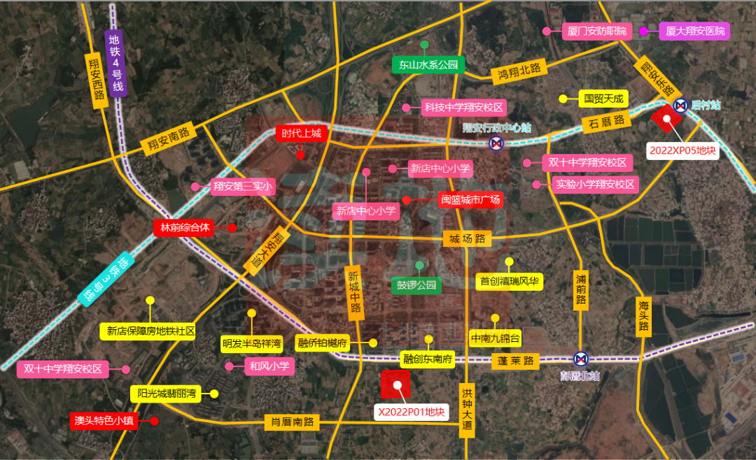 翔安新城交通配套方面,地塊周邊擁有翔安大道、新城中路、洞庭路、蓬萊路等交通干道,可快速連接廈門本島以及同安、泉州等地。在地鐵3號和4號線、翔安大橋、翔安新機場等重大交通項目的助力下,區(qū)域交通樞紐地位將進一步得到提升。地塊緊鄰已開通的地鐵3號線后村站,公共交通出行條件將更為便捷。教育資源方面,地塊所在的片區(qū)教育資源充足,是廈門“名??鐛u”戰(zhàn)略部署的重鎮(zhèn),已落地科技中學翔安校區(qū)、雙十中學翔安校區(qū)(初中部、高中部)、廈門實驗小學翔安校區(qū)等多所島內(nèi)老牌名校的島外直屬校區(qū),未來片區(qū)內(nèi)將形成從幼兒園到高中一站式優(yōu)質(zhì)教育資源集群。