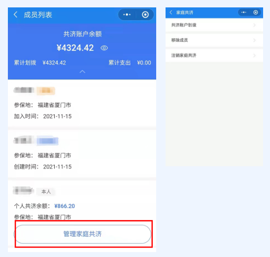 家庭共濟(jì)情況及共濟(jì)賬戶余額查詢