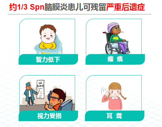 肺炎球菌對抗生素耐藥性嚴(yán)重,治療難度大,平均治療費用28899.48元;約15%~30% 的肺炎球菌性腦膜炎幸存者中患有神經(jīng)系統(tǒng)后遺癥,包括智力低下、癱瘓、聽力障礙等。