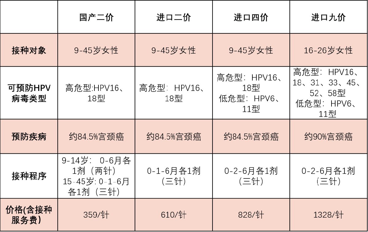二價(jià)、四價(jià)、九價(jià)HPV疫苗區(qū)別