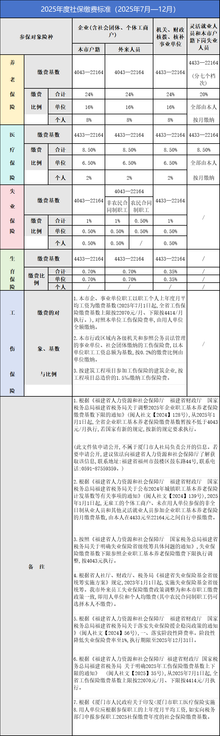 文章關鍵字:如果《廈門市2025年度社保繳費標準(表二:2025年7月-12月)》找不到你想要的內(nèi)容,可以嘗試: