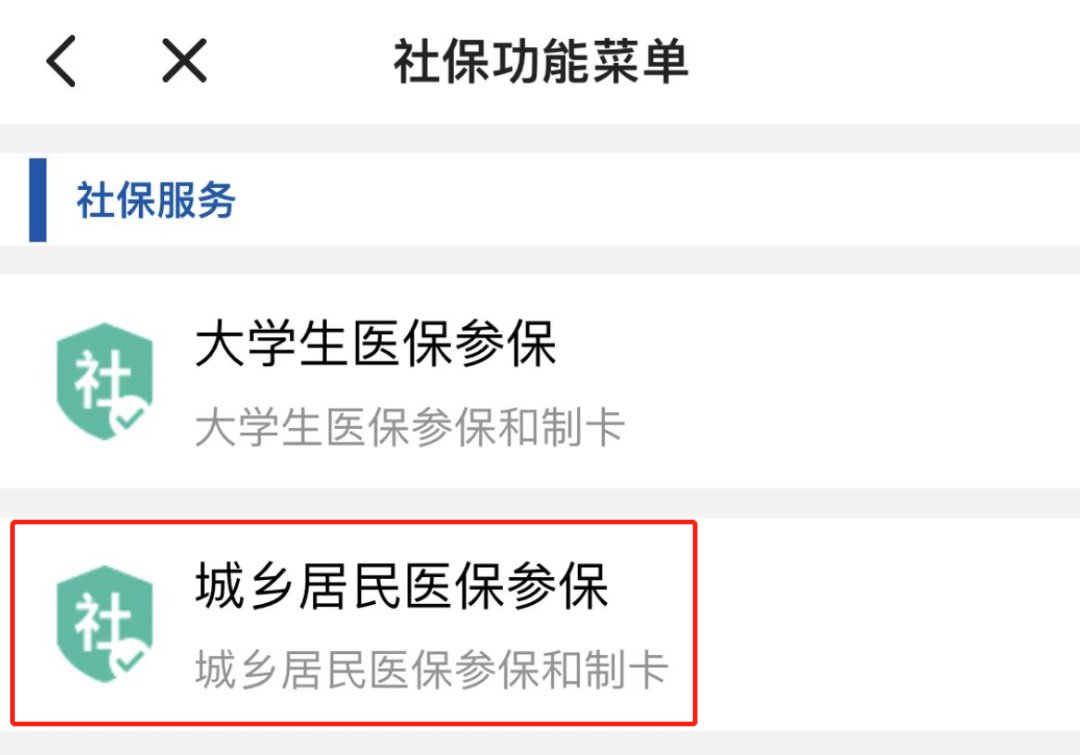 02:點(diǎn)擊“城鄉(xiāng)居民醫(yī)保參保”。