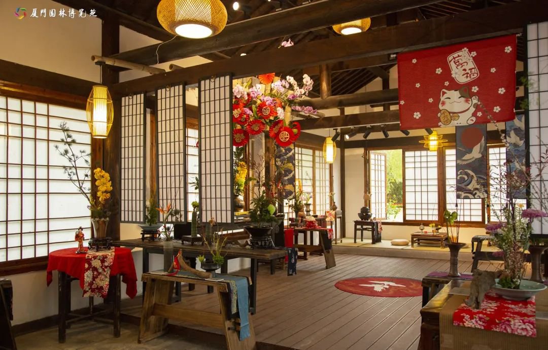 日本園布置了30余組插花作品,融合日式茶道和花藝。