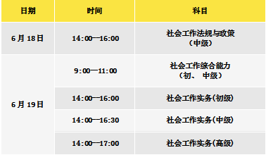 考試定于6月18日至19日進(jìn)行,具體時(shí)間和科目為:
