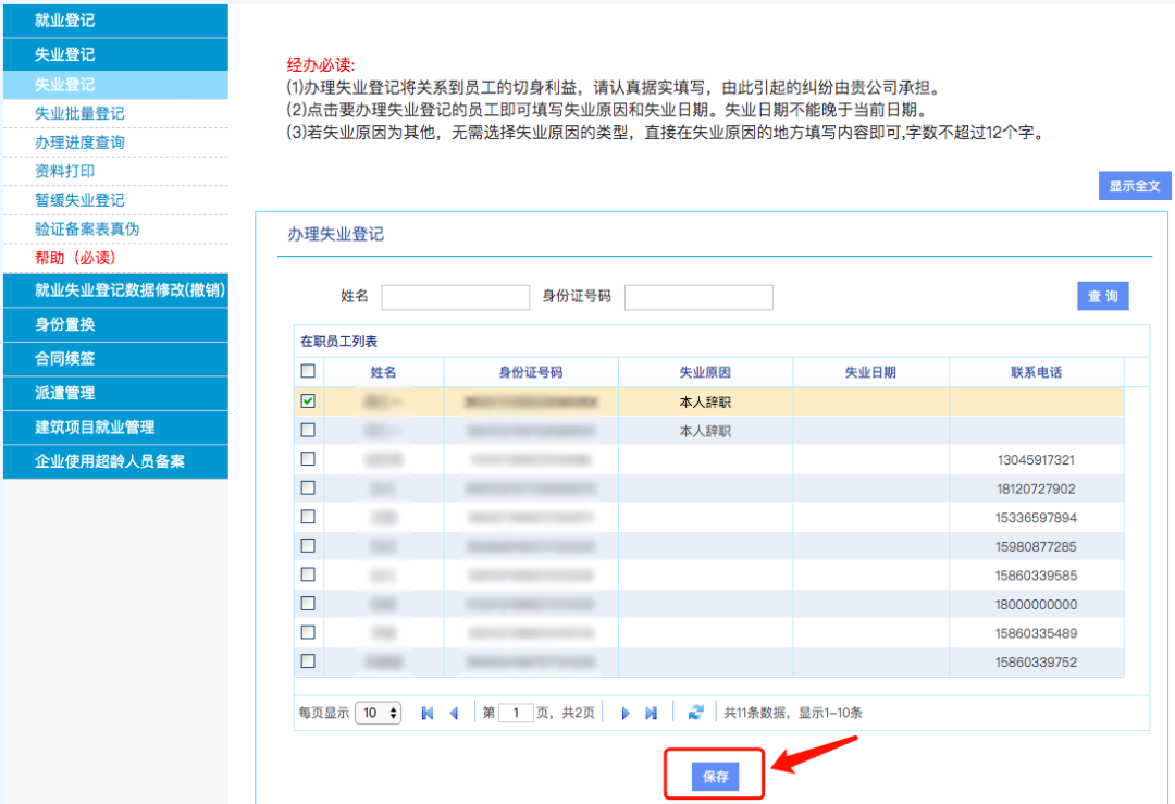 登錄廈門市人力資源和社會保障局對公綜合服務(wù)平臺,選擇“失業(yè)登記”模塊,點(diǎn)擊“失業(yè)登記→勾選新增失業(yè)人員名單(選擇失業(yè)原因、失業(yè)日期、聯(lián)系電話)”并保存,新增失業(yè)員工信息全部錄入完后,提交到單位辦理就業(yè)登記的業(yè)務(wù)受理部門。