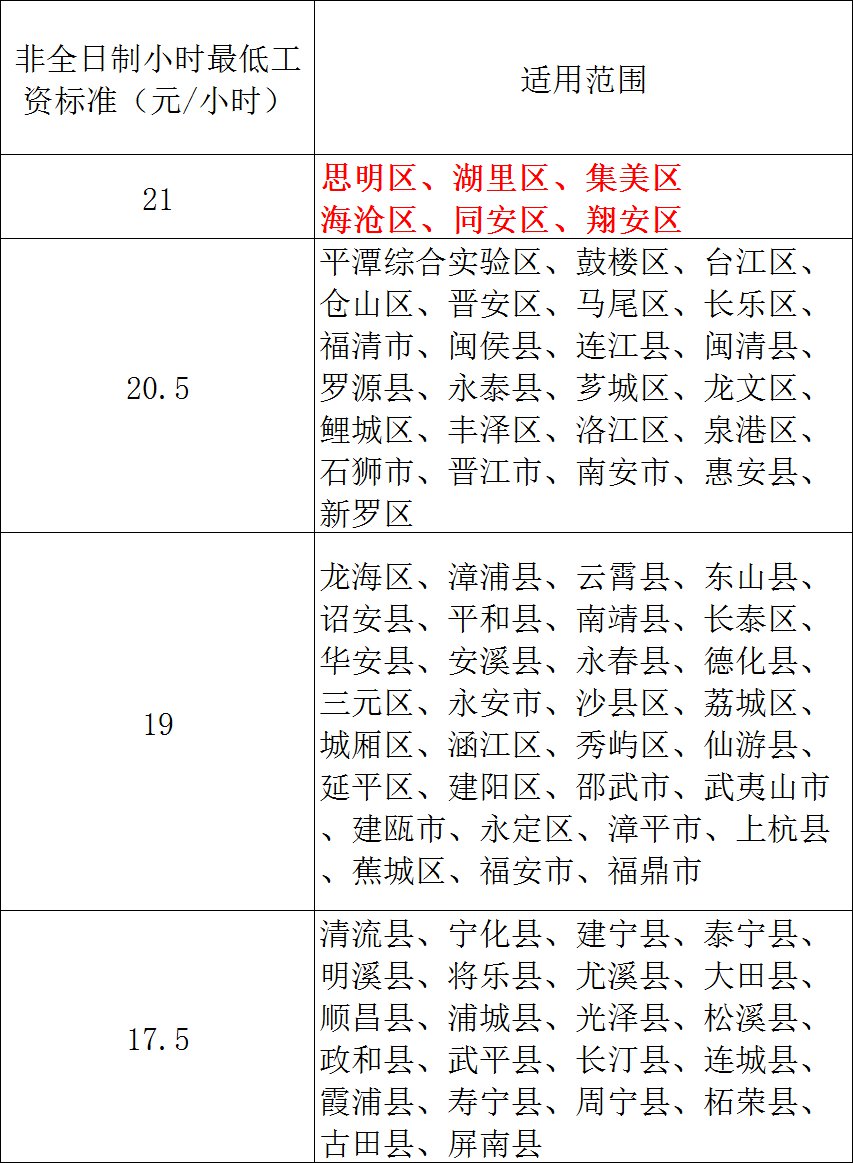 福建省非全日制用工小時(shí)最低工資標(biāo)準(zhǔn)及適用范圍表