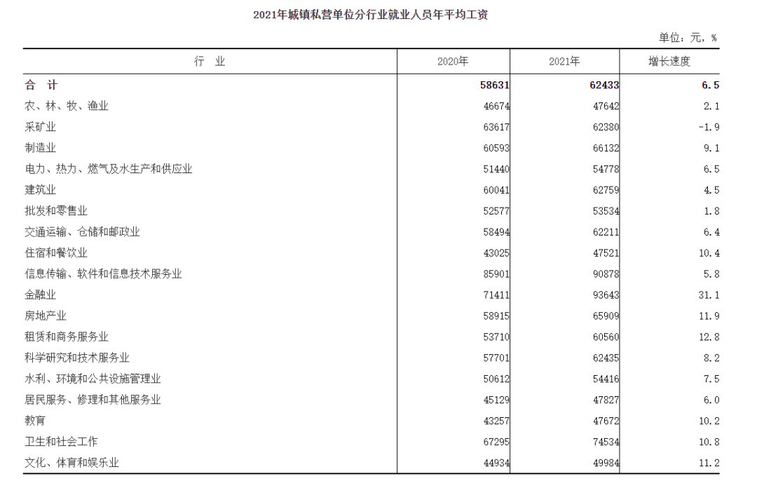 2021年,福建省城鎮(zhèn)私營單位就業(yè)人員年平均工資62433元,比2020年增加3802元,名義增長6.5%,增幅比2020年提高3.9個百分點。