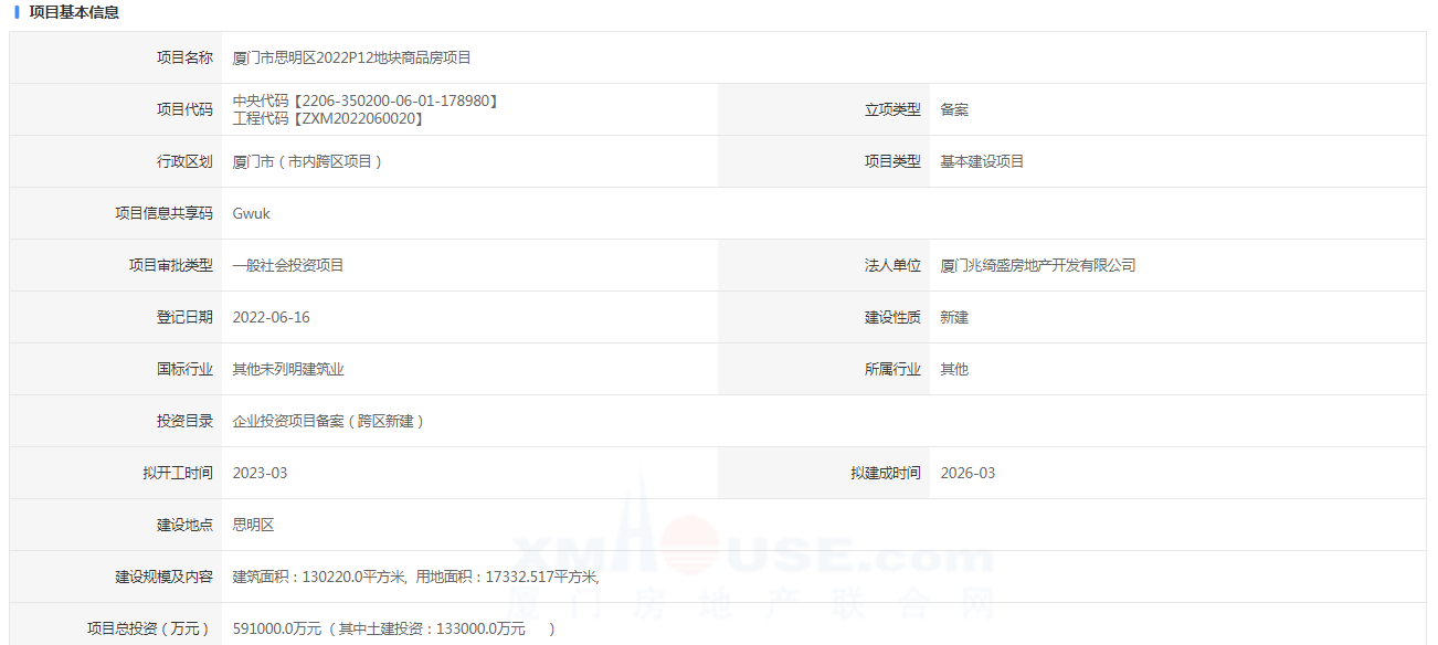 剛剛, 廈門市思明區(qū)2022P12地塊商品房項(xiàng)目報(bào)建信息公布。