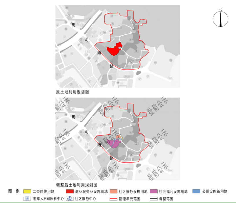 其中,兩幅原規(guī)劃商業(yè)服務(wù)設(shè)施用地被分別調(diào)整為福利設(shè)施用地和社區(qū)服務(wù)設(shè)施用地和公用設(shè)施設(shè)備用地。