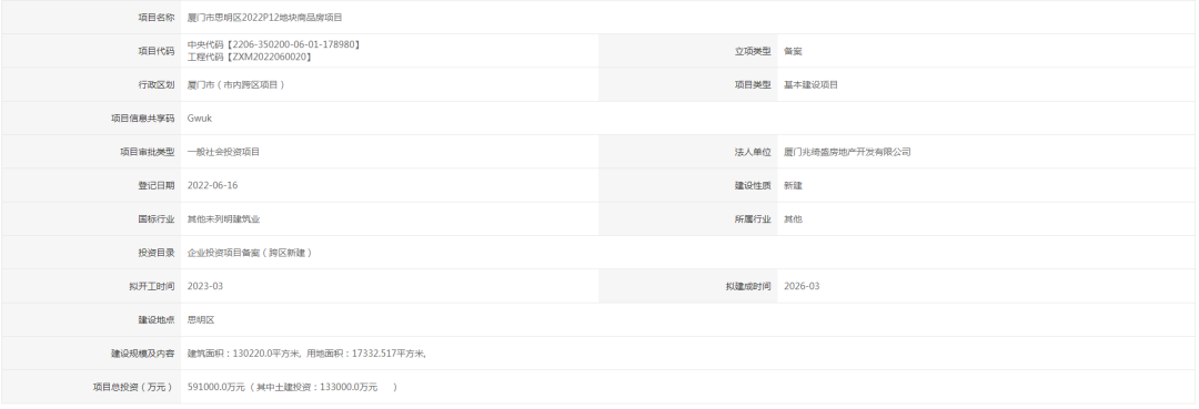 報建信息得知,項目擬開工時間為2023年03月,擬建成時間為2026年03月。